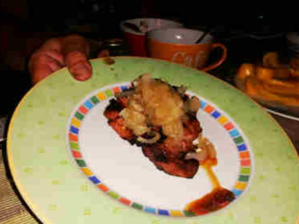 Die Leber eingelegt in eine Marinade und Klasse gegrillt, sehr sehr gut gemacht. Die gegrillte Leber werde ich, sollte ich einmal