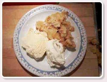 Apple Crumble mag ich, und auf das warme Stück noch einen Schlag frisch geschlagener Sahne!!! einfach lecker.