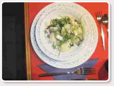 Stefan hatte den ersten Gang, die Sauerrahmcreme, bereits vorbereitet und ein dunkles