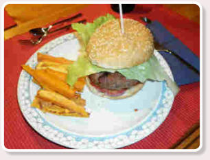 Drumboys Big Kahuna Burger mit Süßkartoffel Fritten