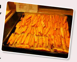 Die Süßkartoffeln schälen und in etwas dickere Pommes-Stäbchen schneiden.