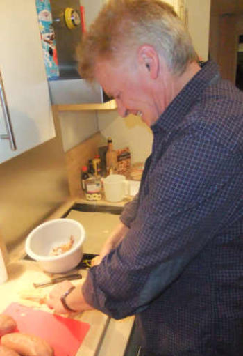 Stefan rief zum Arbeiten auf, ein schlimmer Gastgeber, der Salat sollte zubereitet werden. Lust hatte im Moment keiner, also