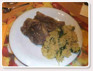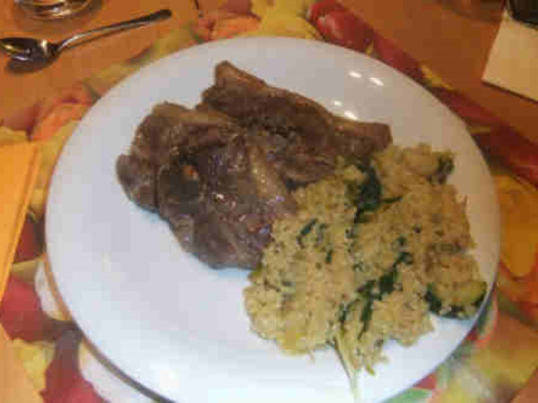 Die Hauptspeise war sehr gut. Die doppelten Lammkotelets vom Walter waren hervorragend, und das Bulgur, das wir zum ersten