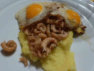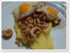 Kartoffelpüree mit Wachtelspiegelei und Krabben