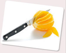 Zitrusfrüchte mit einem scharfen Messer bis ins Fruchtfleisch hinein, um die weiße, bitter schmeckende