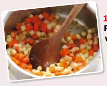 einem großen Topf erhitzen. Gemüse darin anschwitzen, würzen.