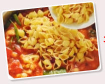 3. Schritt: Die kleinen Nudeln einstreuen und nach Anleitung mitgaren.