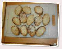 Parmesan hobeln. Parmesan aufs heiße Brot legen– fertig sind die kleinen Krusten (Crostini).