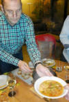 Nachdem wir den Fenchelsalat gegessen hatten, war auch schon fast die Minestrone fertig. Stefan und Matthias P. hatten sich