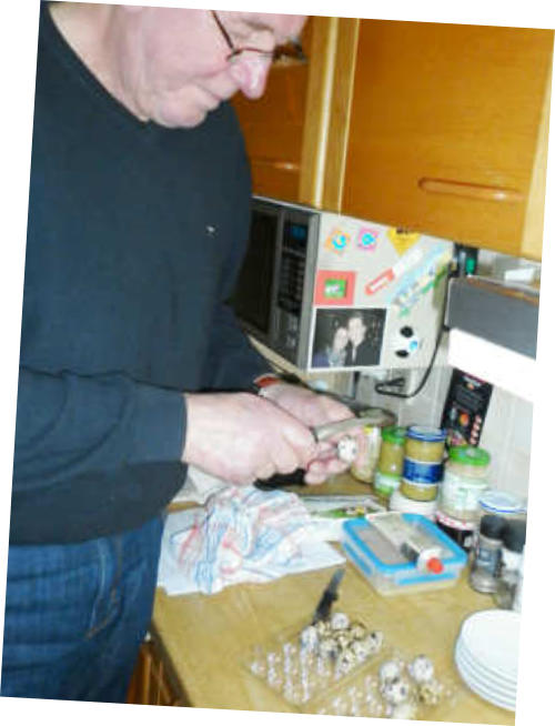 Die Wachteleier mit einem scharfen Messer vorsichtig anschneiden.