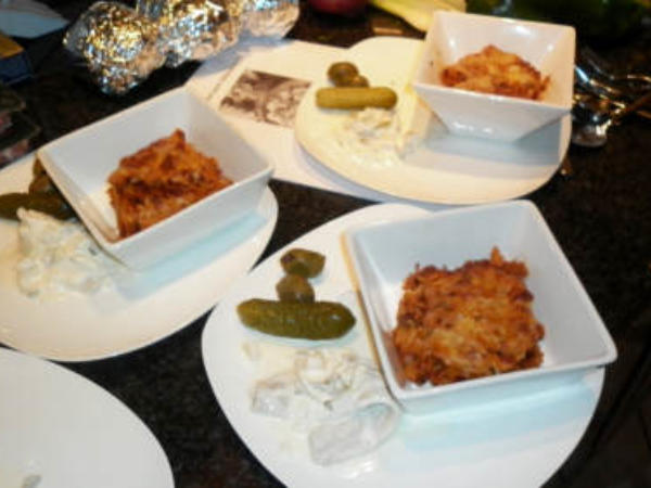 Den Nudelauflauf hatte ich bereits morgens vorbereitet. Die Sahneheringe, Oliven und