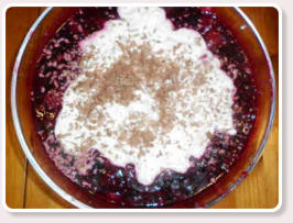 Leider ist mir der Nachtisch von der Konsistenz her nicht so gut gelungen Die Beeren waren mit ihrem Saft etwas zu flüssig. Das