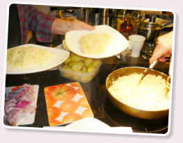 Zwischenzeitlich begannen Matthias Pietzsch und unser Gastkoch Gerhard mit der Beilage zu den Fleischbällchen und den noch
