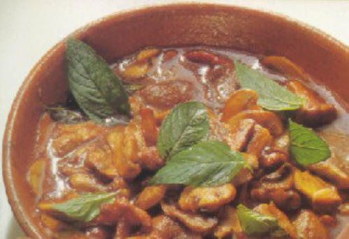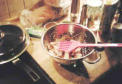 brodelnd heiß im Tongefäß auf den Tisch bringen.