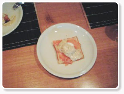 Ziegenkäse und einer Sauce auf Toastbrot, und als zweites